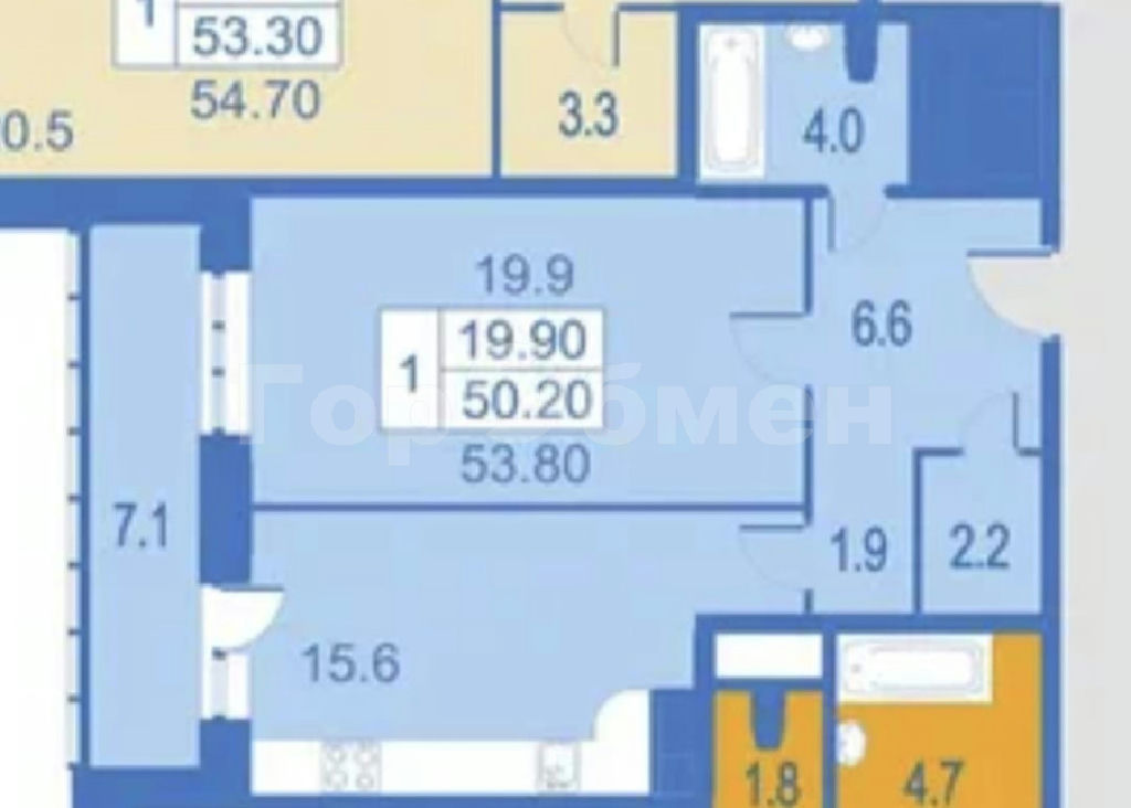 Общая: 50,2 м2